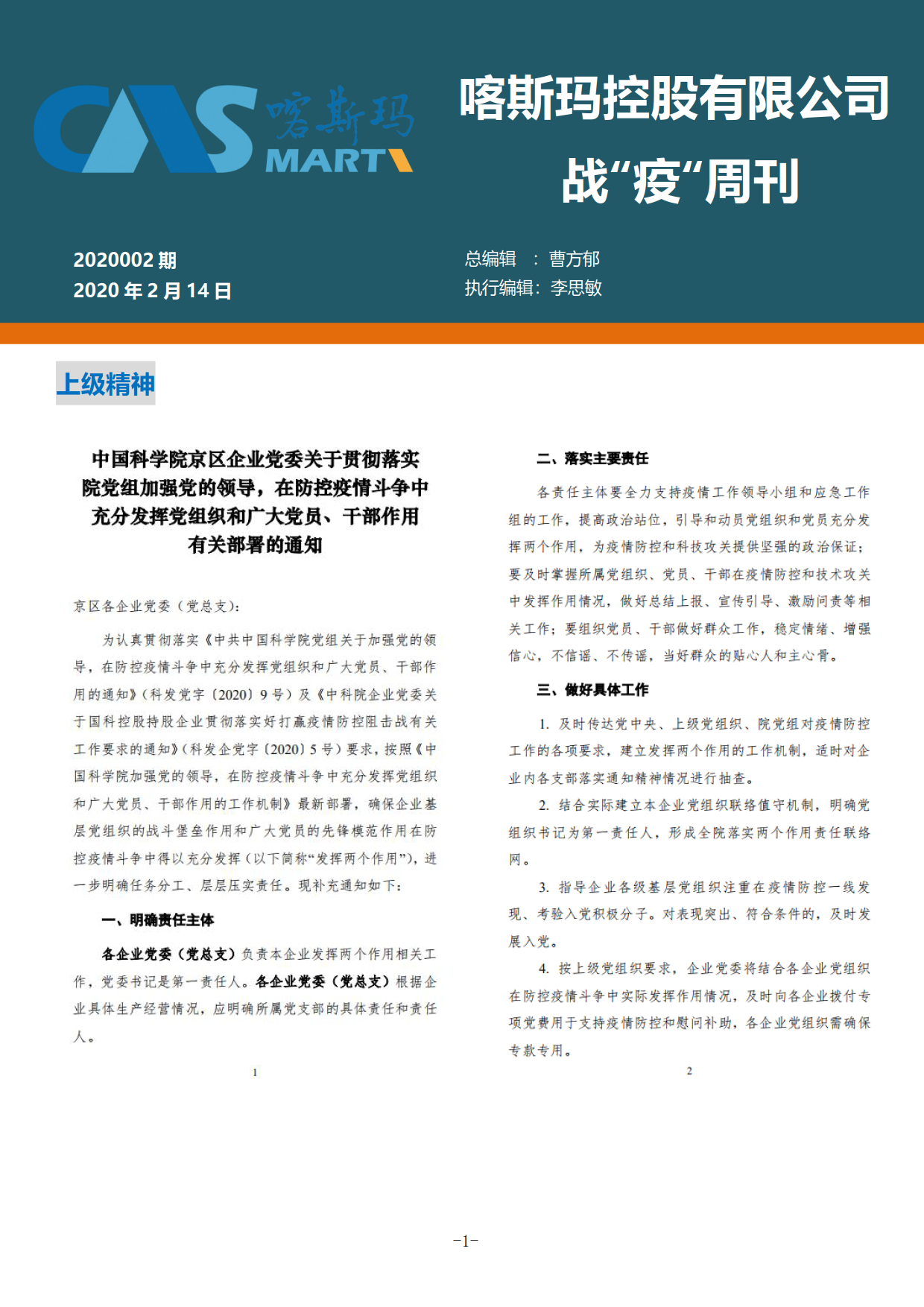 喀斯瑪控股有限公司戰(zhàn)“疫”周刊2020002期